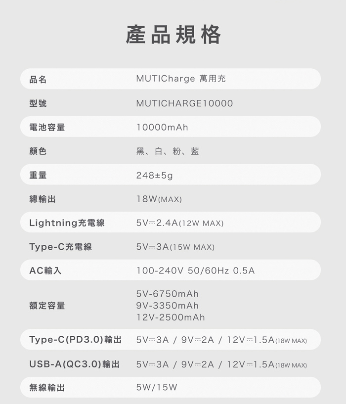 型號:MUTICHARGE10000