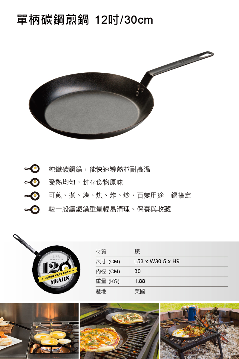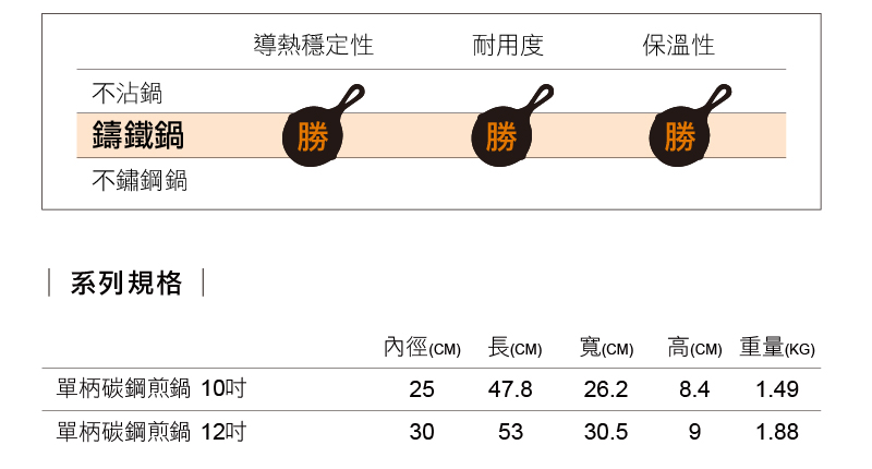碳鋼鍋純鐵密度高,耐高溫且受熱均勻,不因食材加入,影響鍋內烹飪溫度