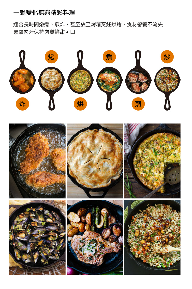 適用於各種烹飪方式,無論是煲燉、燒烤、煙燻、油炸、鹽燒、蒸食皆能一鍋搞定,為廚房必備萬能料理鍋