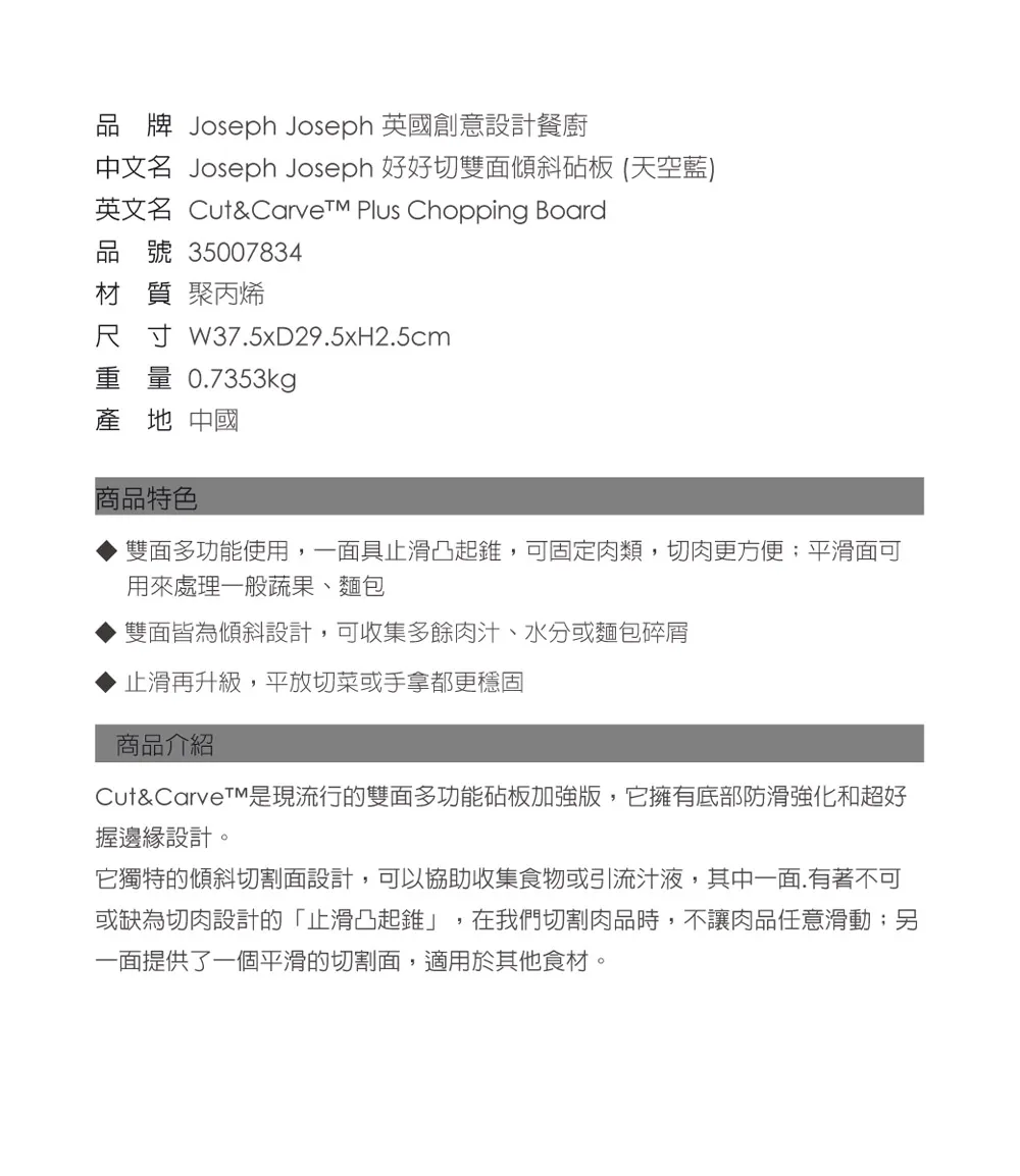 中文名:Joseph Joseph 好好切雙面傾斜砧板(天空藍)