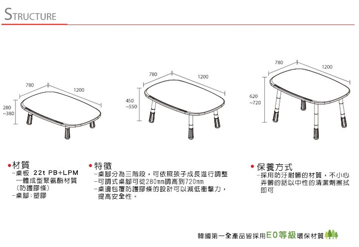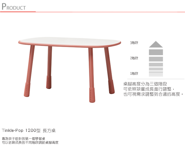 內含:Tinkle-Pop 兒童1200型三段式調整長方桌*1