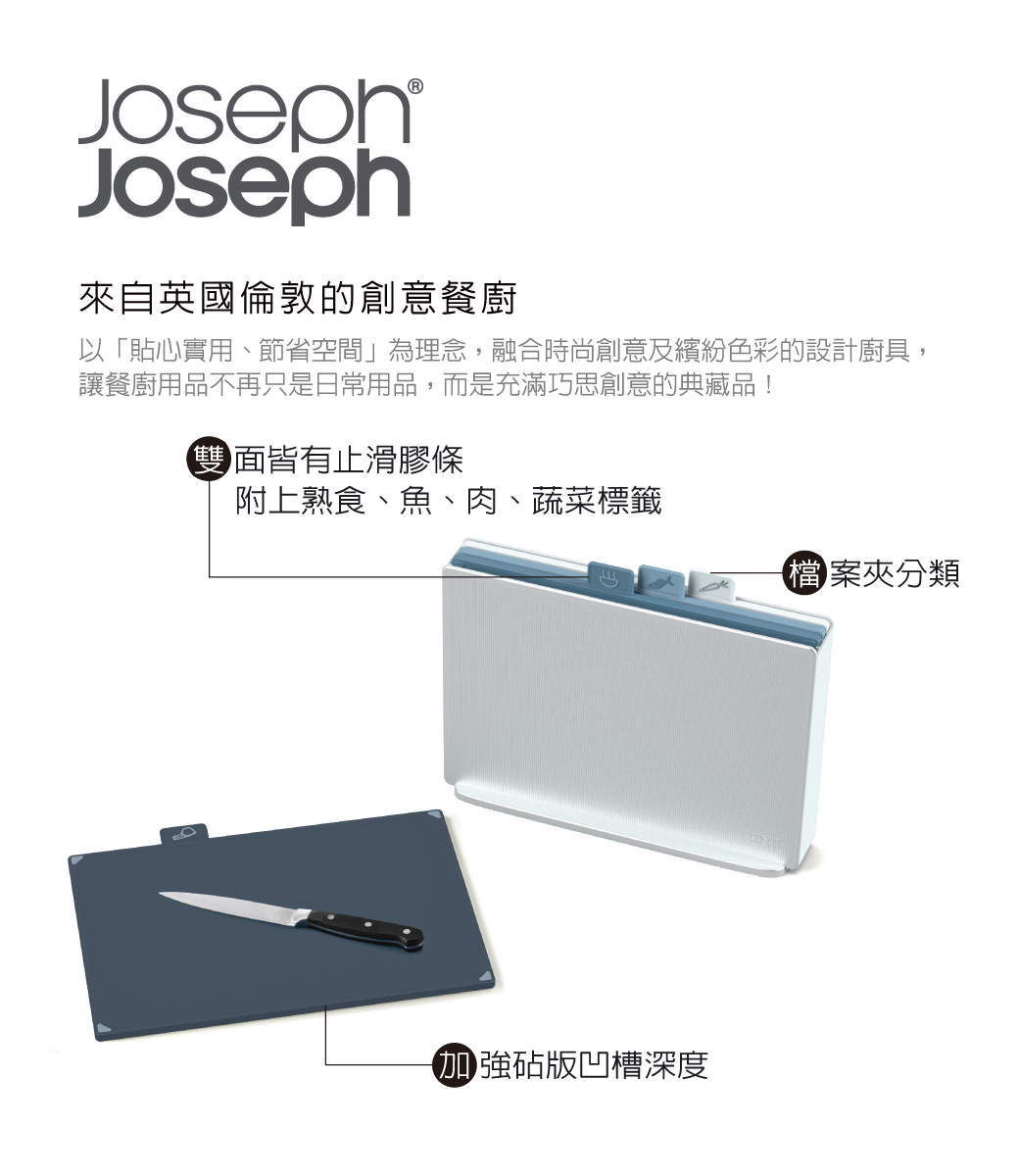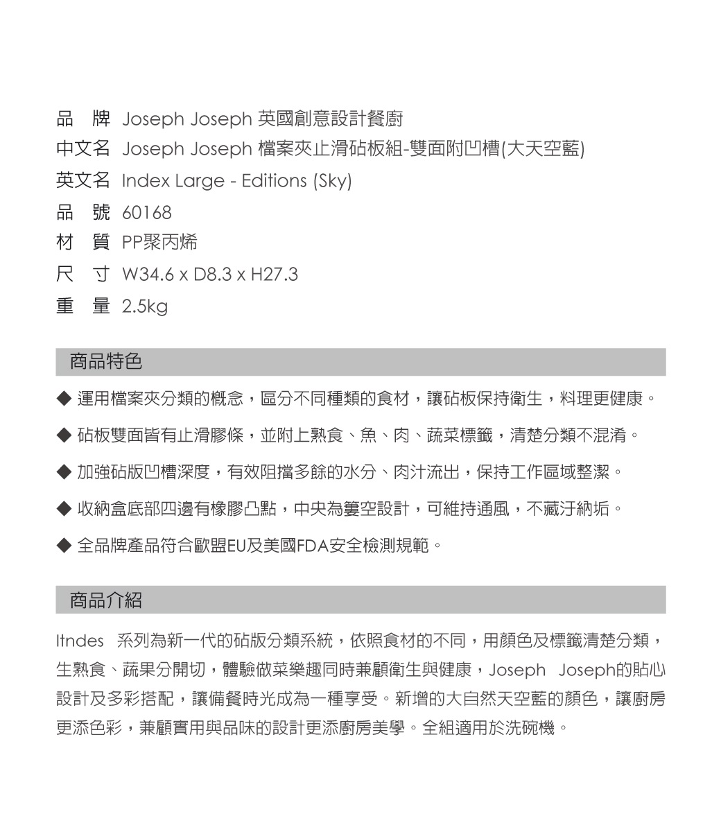 內含:【Joseph Joseph 】檔案夾止滑砧板組-雙面附凹槽(大天空藍)