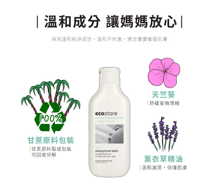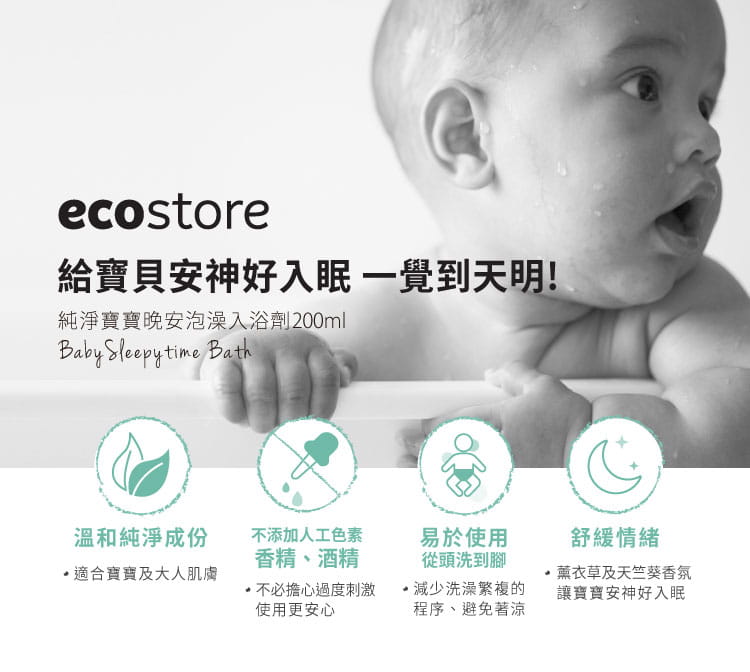 內含:【ecostore】純淨寶寶晚安泡澡入浴劑200ml