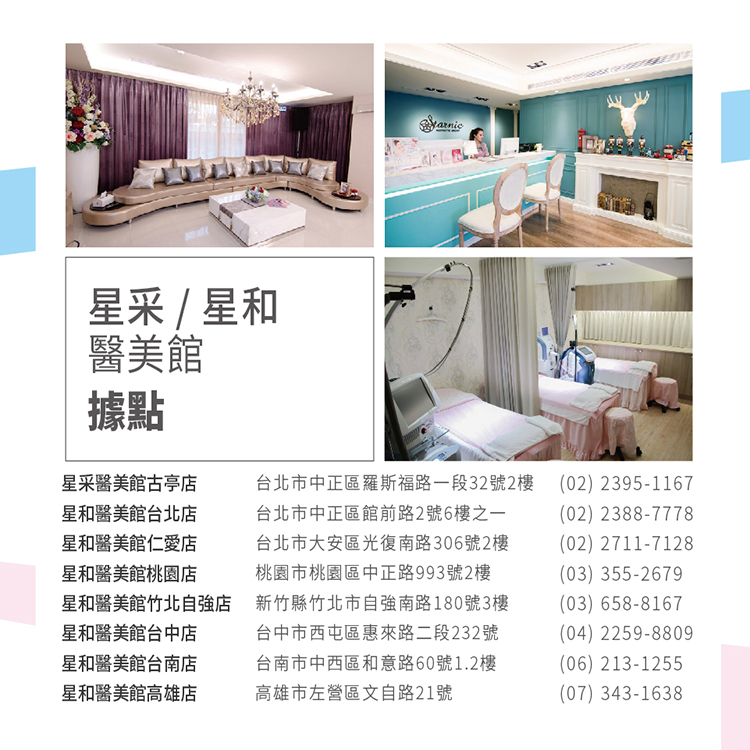 適用地點:星采醫美館/星和醫美館 (除了星采大安店及星和竹北店不適用)
