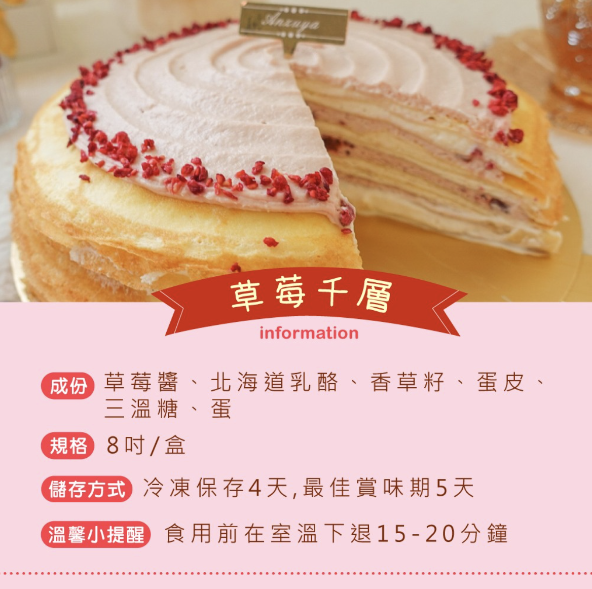 商品內容:8吋草莓千層一入