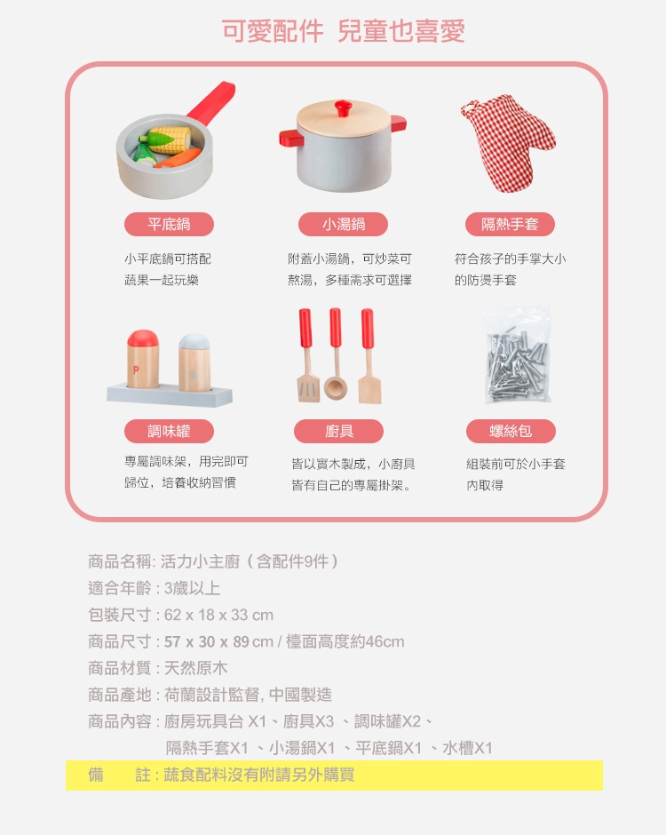 內含:【荷蘭New Classic Toys】活力小主廚木製廚房玩具(含配件9件)- 11055