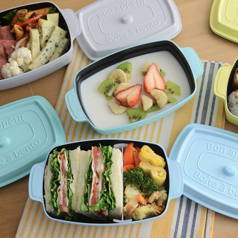 內含:【日本製COCOPOT ROUND】鑄鐵鍋造型雙層可微波便當盒 (方型1入組)
