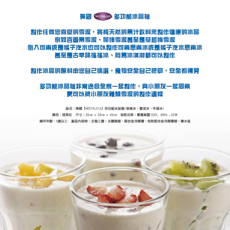 內含:【美國NOSTALGIA】多功能冰品機 RSM650