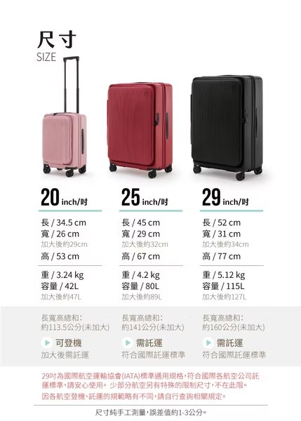 ⚠️20吋符合登機尺寸,但須以各家航公公司規定為準
