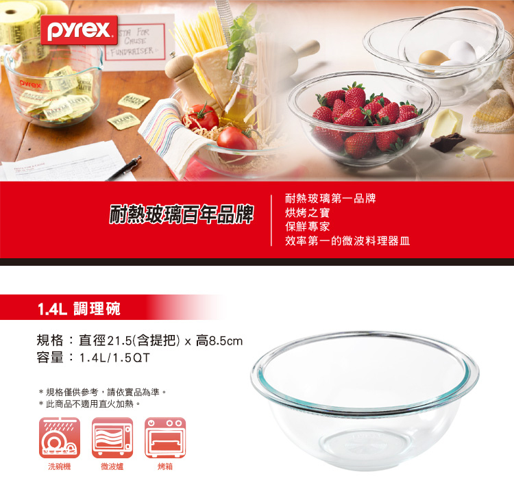 內含:【美國康寧 Pyrex】百麗調理碗1.4L