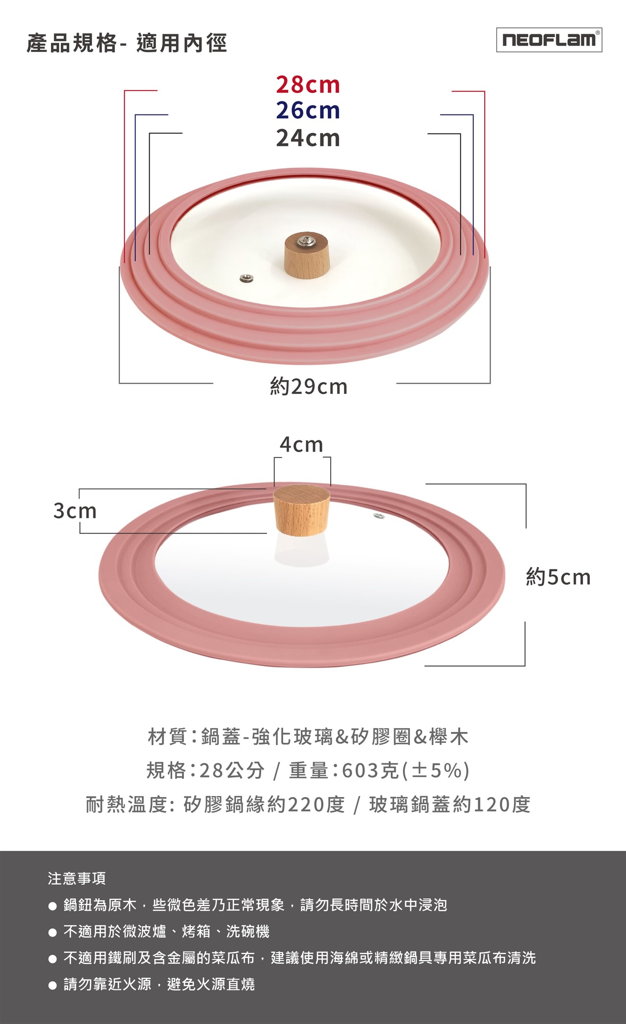 內含:【NEOFLAM】多功能矽膠鍋蓋24-26-28公分(粉色)