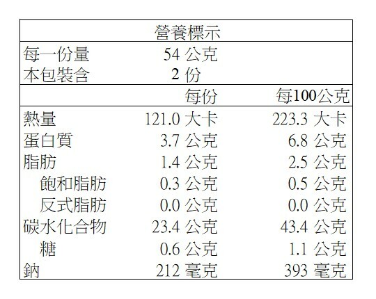 <過敏源資訊:本產品含麩質穀類製品,不適合對其過敏體質者食用>