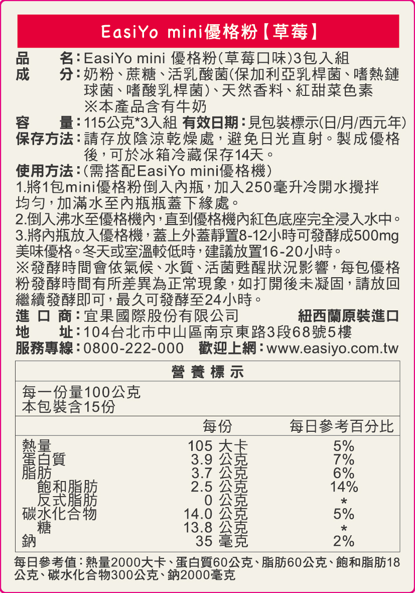 內含:【EASIYO】迷你優格粉3入組*1盒