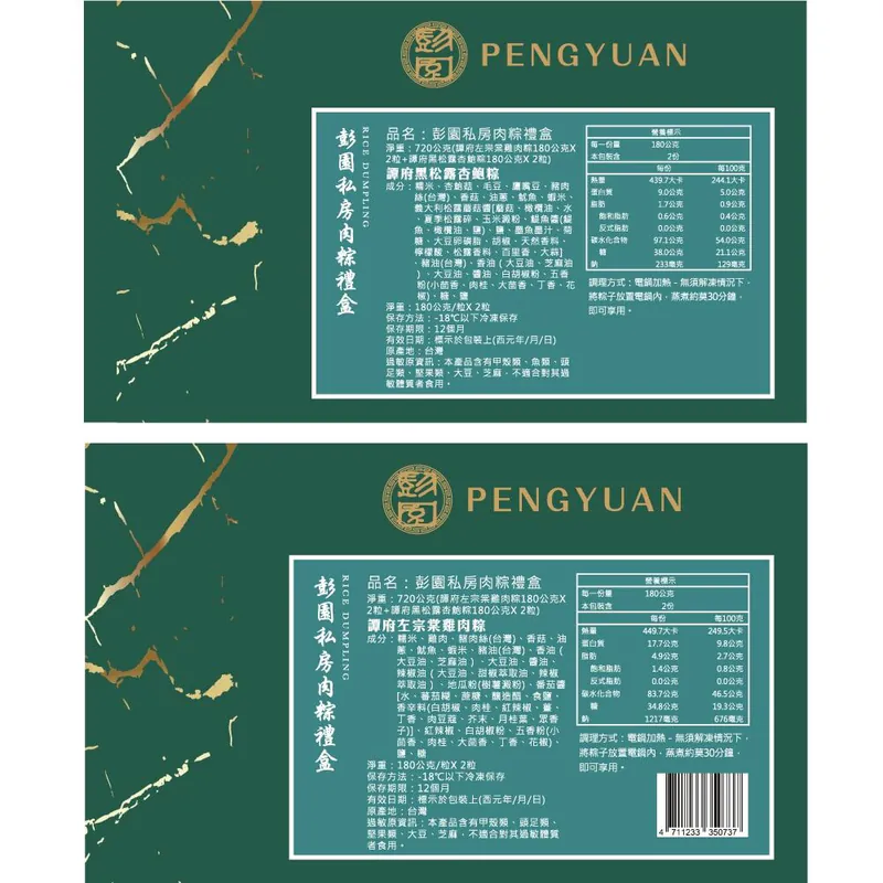 內含:720公克(譚府左宗棠雞肉粽180公克X2粒+譚府黑松露杏鮑粽180公克X2粒)