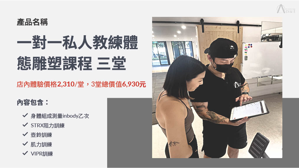 A. 一對一私人教練體態雕塑課三堂-含身體組成測量inboody乙次