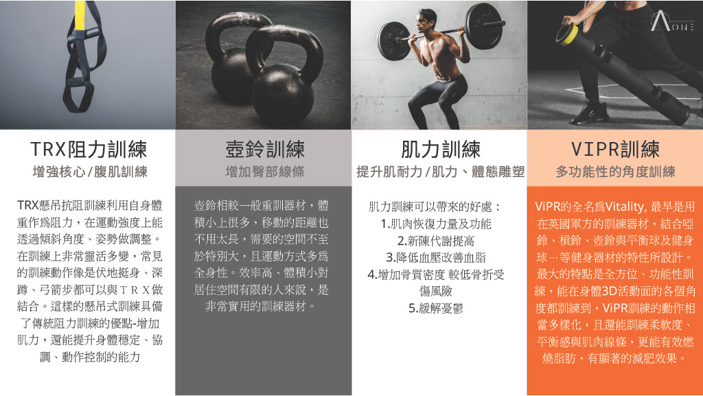 ★課程內容:TRX阻力訓練、壺鈴訓練、肌力訓練、VIPR訓練