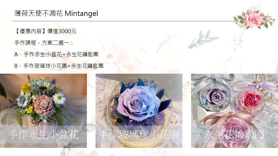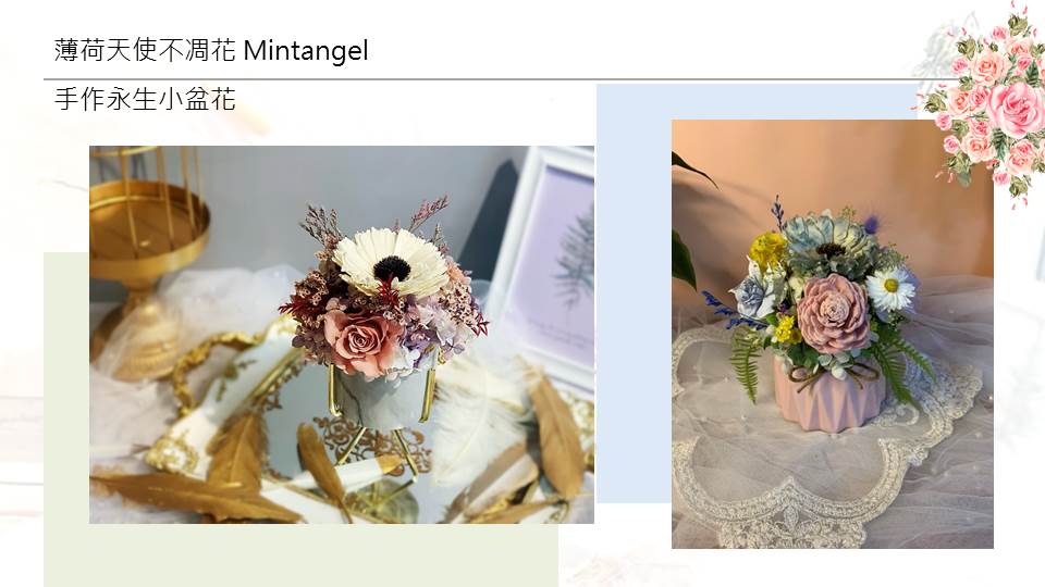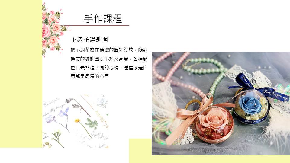 A、手作永生小盆花+永生花鑰匙圈