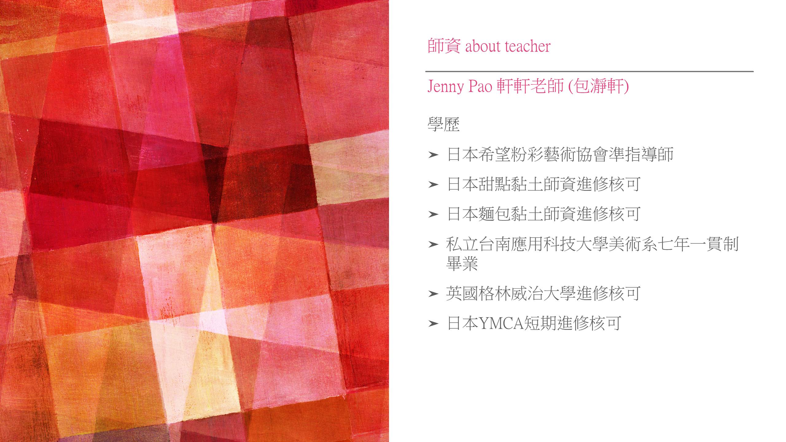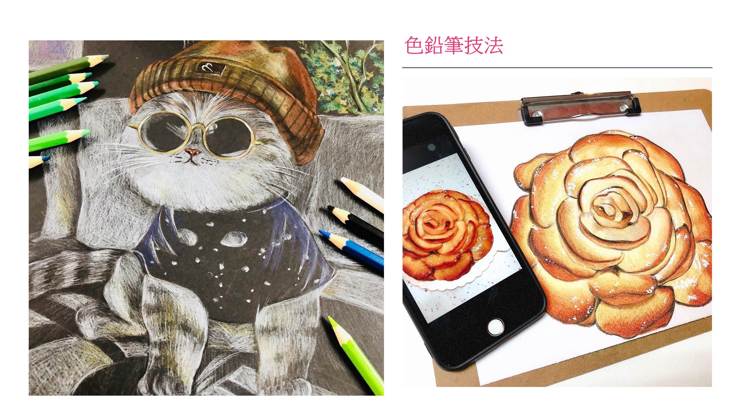 ★課程內容:每堂課須完成一幅完整的四開規格作品,需要一點點耐心及繪畫基礎的進階彩繪課。繪畫內容在老師引導說明後,學員可以在老師陪同下自由創作。在學習過程中,學員還能將想法結合纏繞畫、曼陀羅、裝飾性風格的繪畫一起呈現!完成後可現場自費裝裱,贈禮或自家空間的裝飾,都超。級。無。敵合適呦!