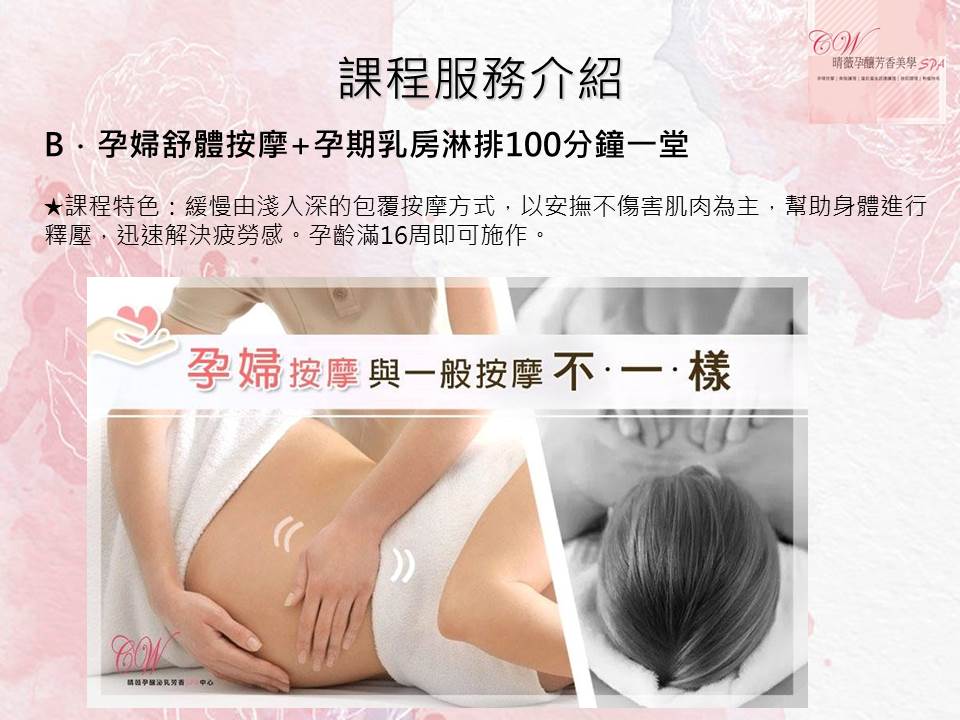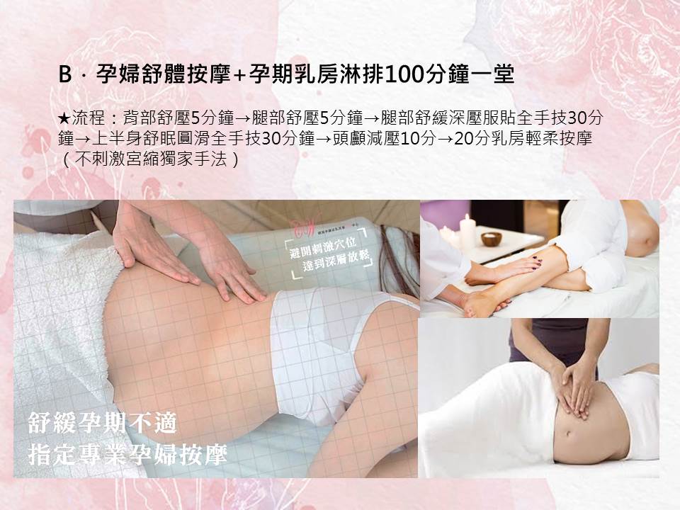 B.孕婦舒體按摩+孕期乳房淋排100分鐘一堂