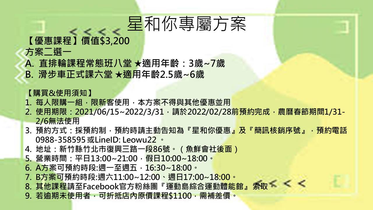 8.其他課程請至Facebook官方粉絲團『運動島綜合運動體能館』 索取。