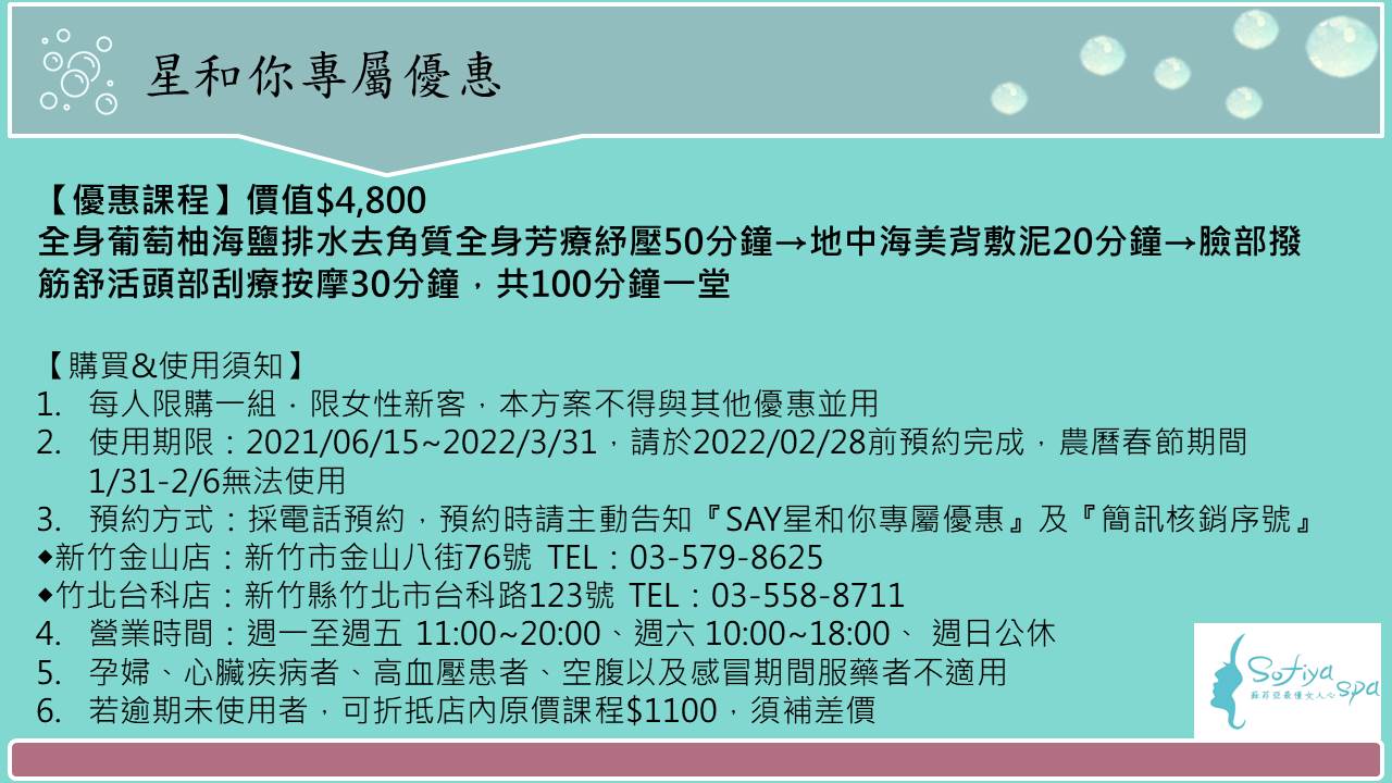 3.預約方式:採電話預約,預約時請主動告知『SAY星和你專屬優惠』及『簡訊核銷序號』