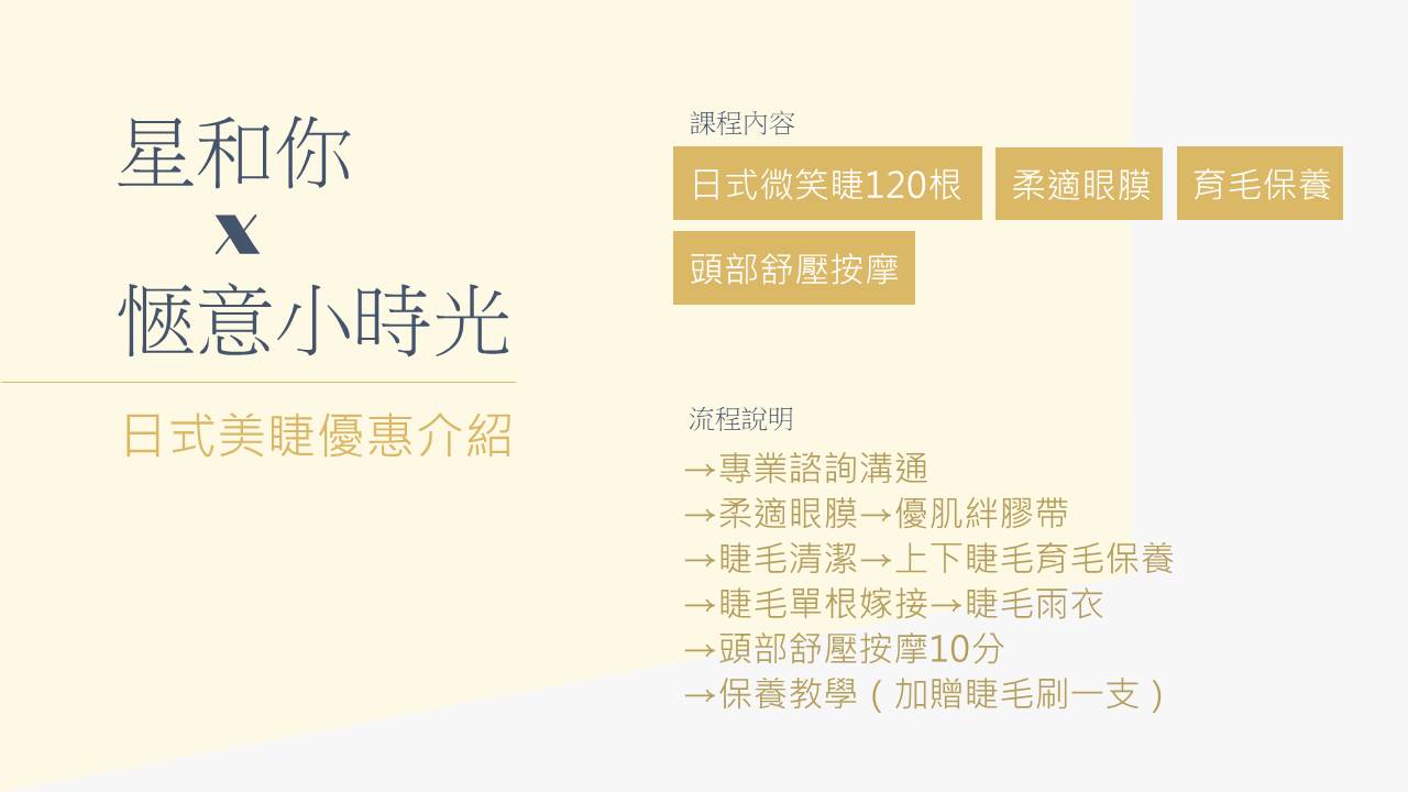 A.日式微笑睫120根+柔適眼膜+育毛保養+頭部舒壓按摩 共120分一堂