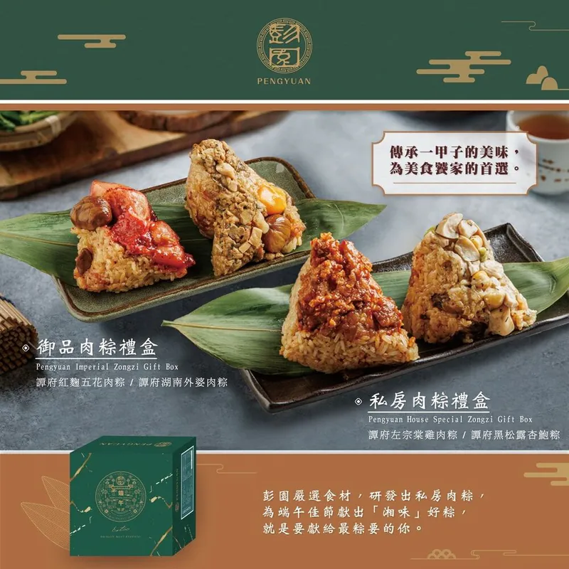 彭園嚴選食材,研發出私房肉粽,為端午佳節獻出「湘味」好粽,就是要獻給最粽要的你。