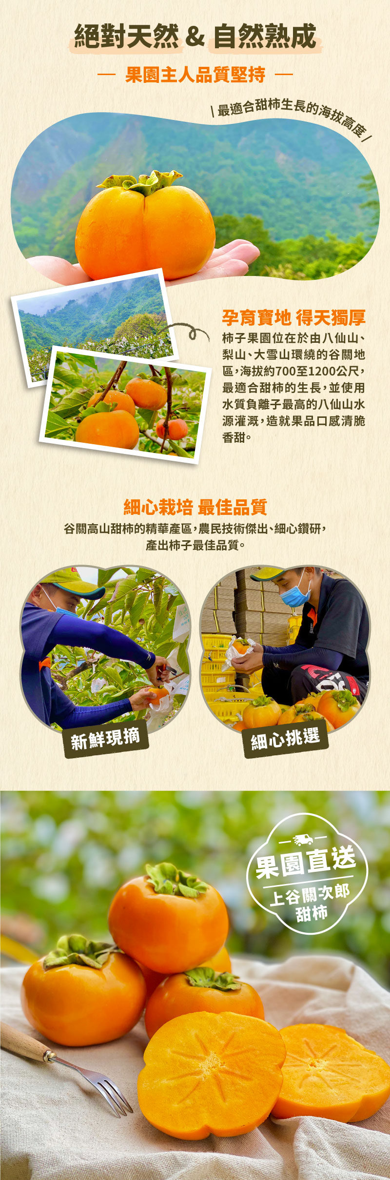 賞味期:採收後約8-9分熟即可食用,最佳的賞味期建議10天內食用完畢。柿子變紅變軟後口感會稍微沒有那麼脆,但是甜度不變唷,最久建議20天內需食用完畢唷。