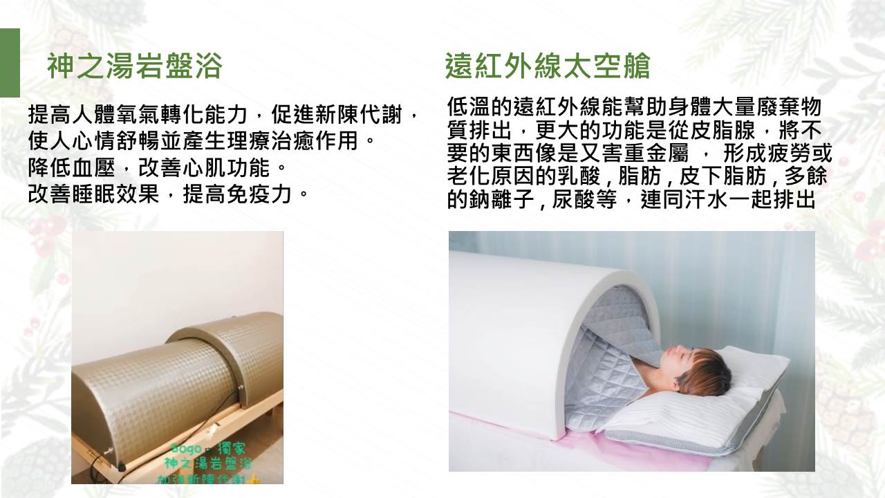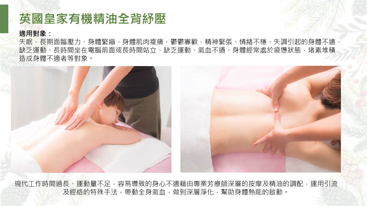 英國皇家有機精油全背紓壓 60分鐘+神之湯岩盤浴 或 遠紅外線太空艙30分鐘+韓國小氣泡緊緻拉提臉部按摩30分鐘,共120分鐘