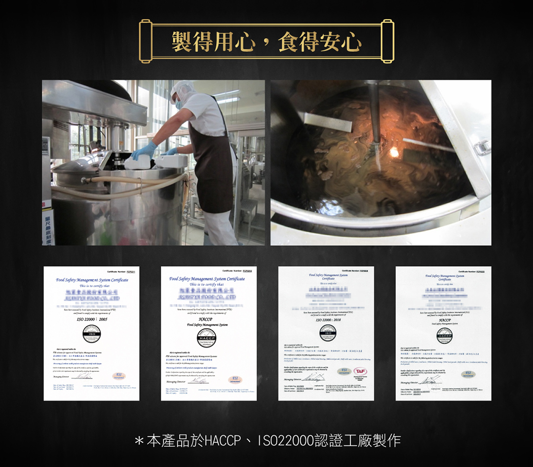 ❺ 具 HACCP 認證、ISO22000 認證。