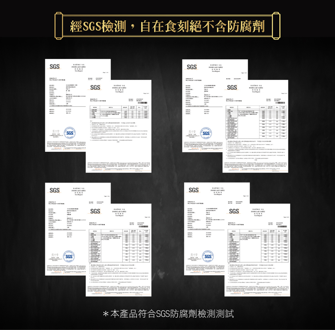 ❷ 包材符合 TFDA 食品容器衛生標準,保存不當時如有產生膨脹現象請寄回更換,如有不便敬請見諒。