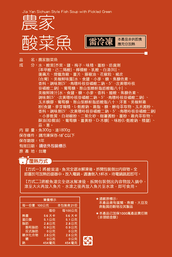 過敏原資訊:本產品含有蛋類、魚類、大豆及含麩質的穀物及其製品