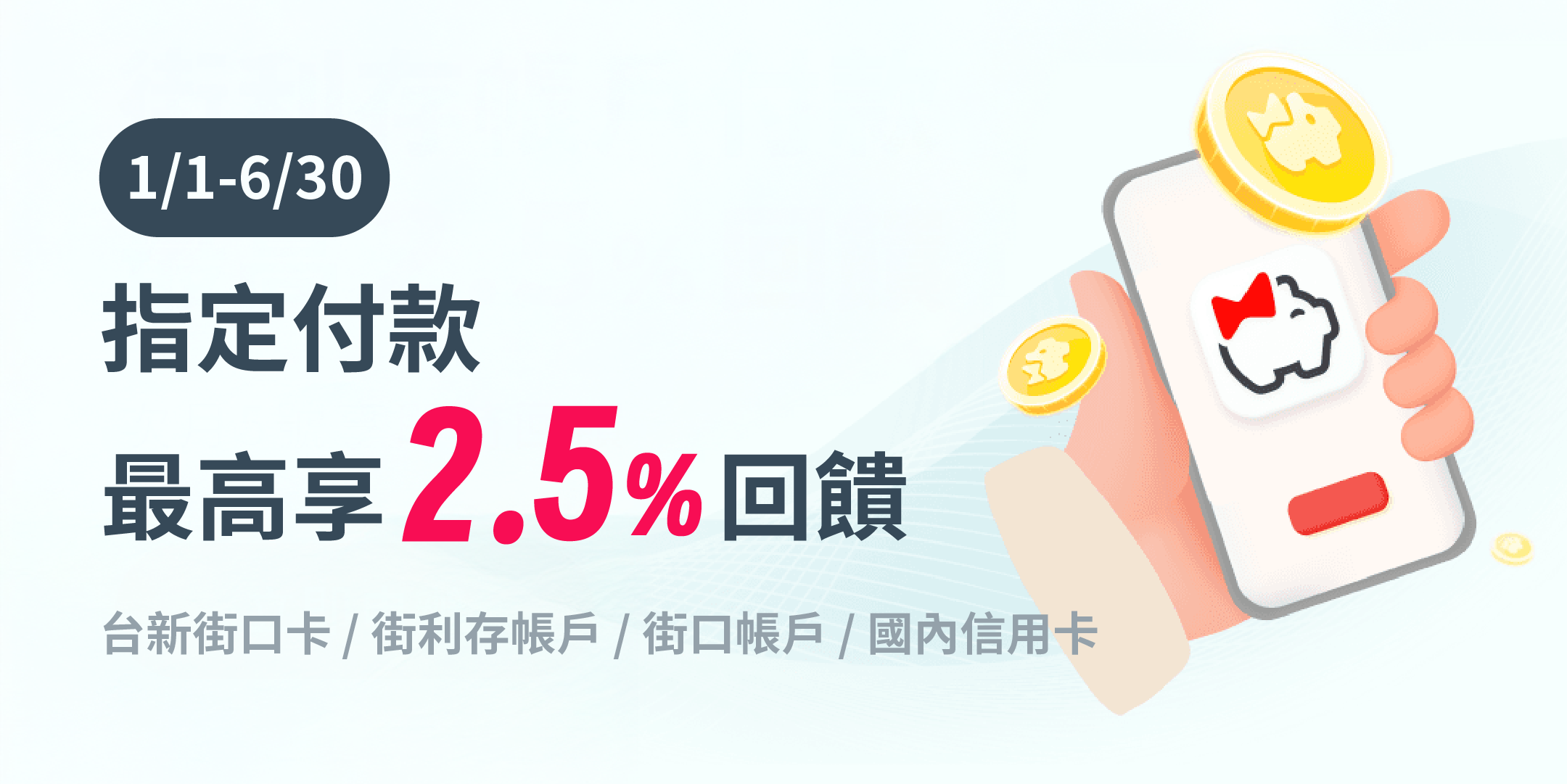 - 本活動需於活動時間內完成手機付款方可享有(活動時間以台灣標準時間為主),活動最終回饋金額,以系統認列為主,恕無法超過時間要求補償。