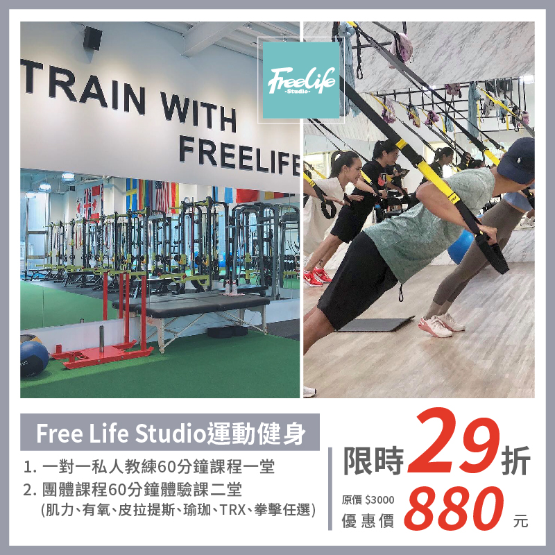 SAY星和你 高雄 | Free Life Studio運動健身 | 1.一對一私人教練60分鐘課程一堂、2.團體課程60分鐘體驗二堂(肌力、有氧、皮拉提斯、瑜珈、TRX、拳擊) x 林叨囝仔 The Lins' Kids
