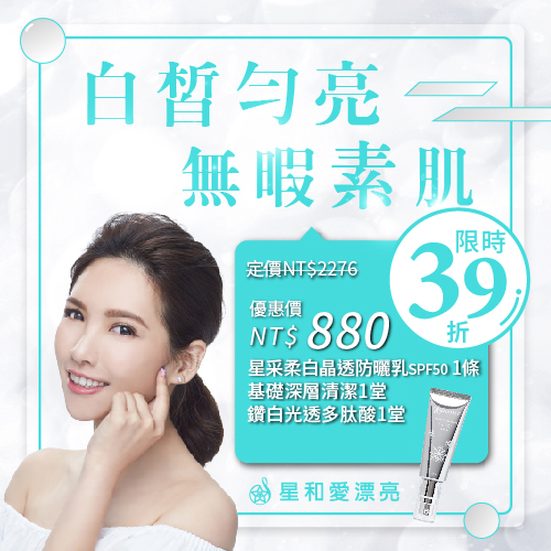 SAY星和你 高雄 |星和愛漂亮美顏館 | 星采柔白晶透防曬乳SPF50 1條、基礎深層清潔1堂+鑽白光透多肽酸1堂