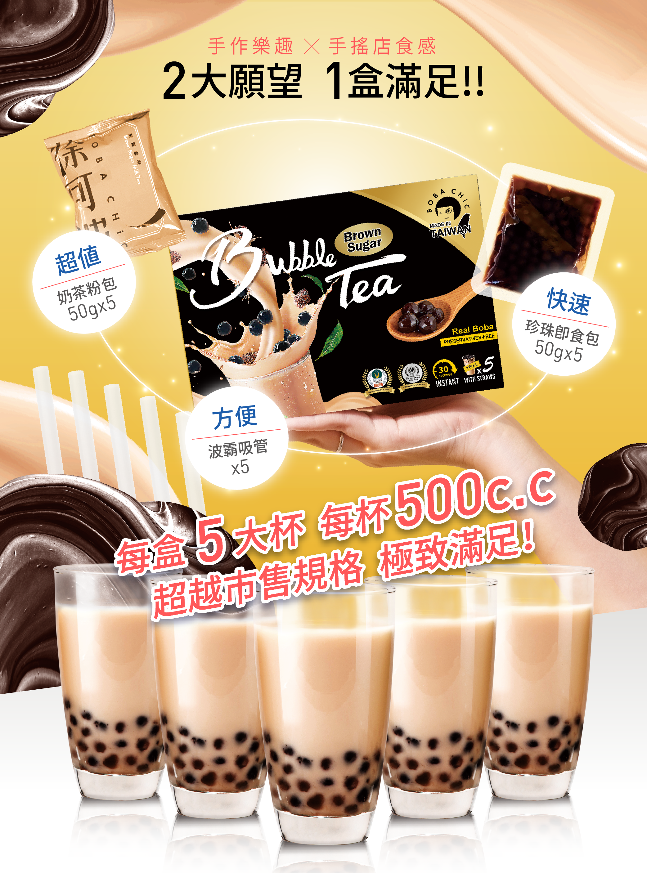 內含:【BOBA CHIC徐可波】黑糖珍珠奶茶DIY組合5入 (黑糖奶茶X5+珍珠X5)