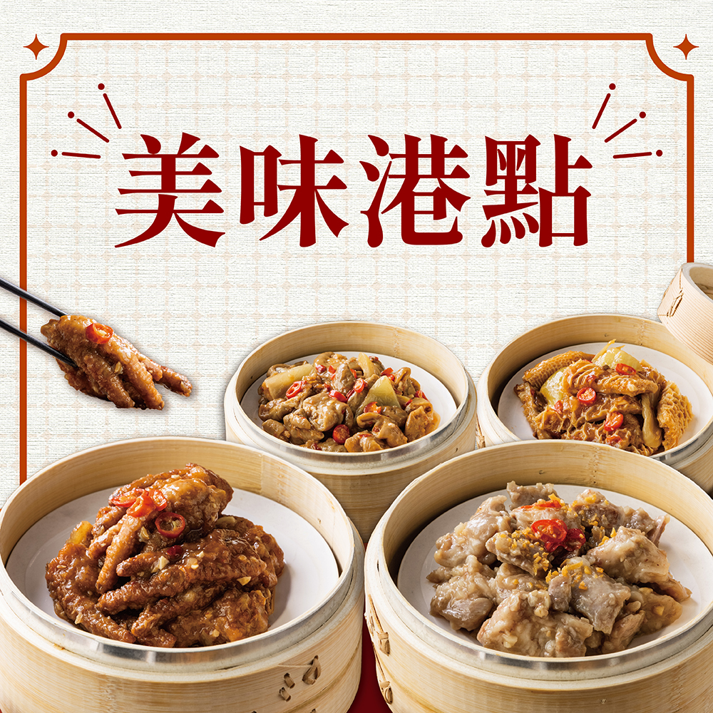 內含:以下肉肉品項各一入:醬皇鳳爪(450g)+蒜味排骨(450g)+金錢牛肚(300g)+港式酸菜大腸(300g)