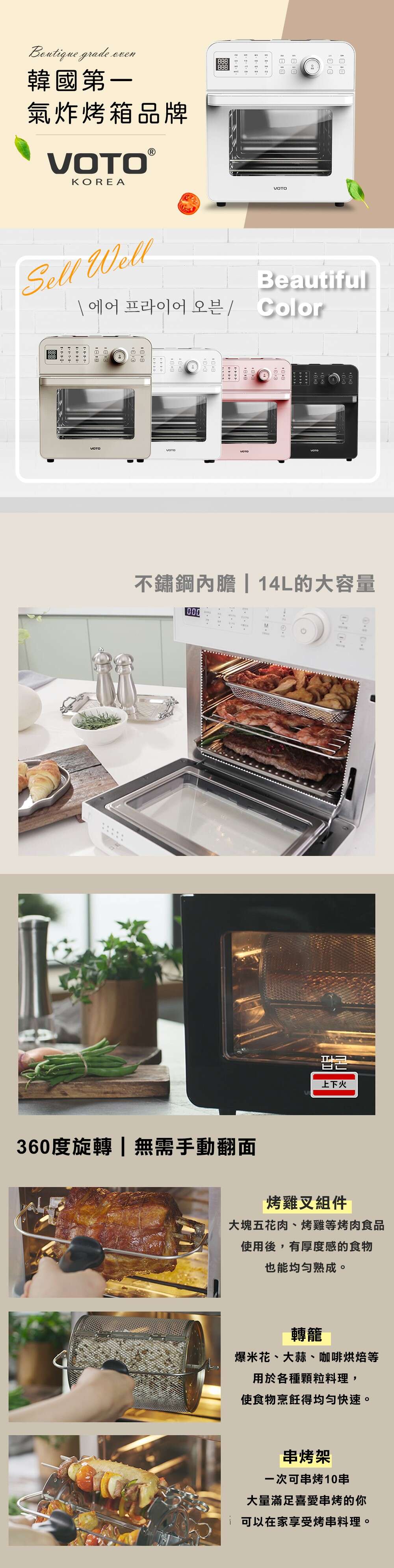 內含:【VOTO】韓國第一氣炸烤箱14公升 - 7件組(多色可選)
