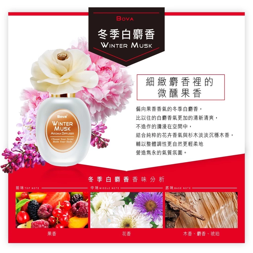 內含:贈品🌟【Bova】花漾擴香瓶100ml-冬季白麝香 Winter Musk
