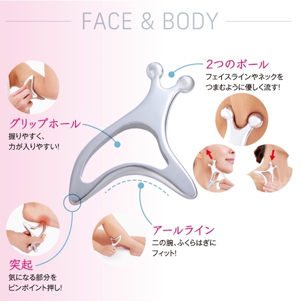 後頸、雙肩:採用下方圓弧,按摩肩頸消除疲勞酸痛